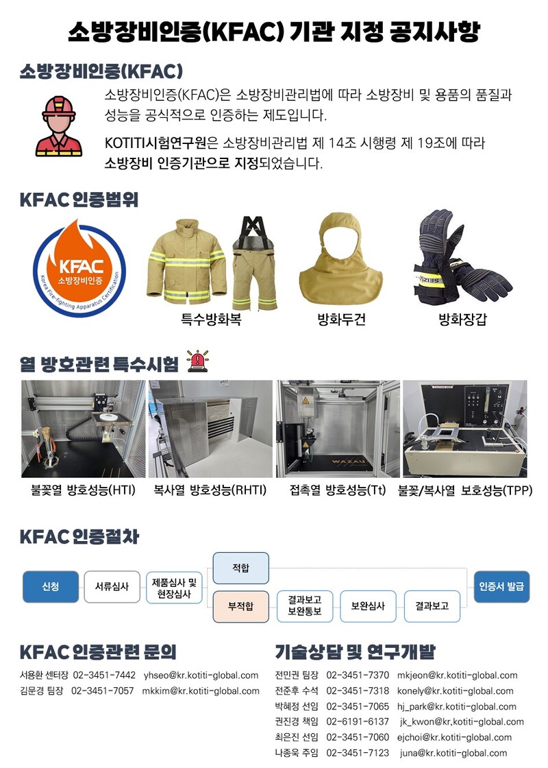 소방장비인증(KFAC) 기관 지정 안내