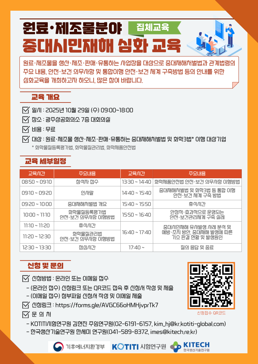 원료·제조물분야 중대시민재해(중대재해처벌법 및 화학3법) 집체교육 (10/29, 광주)