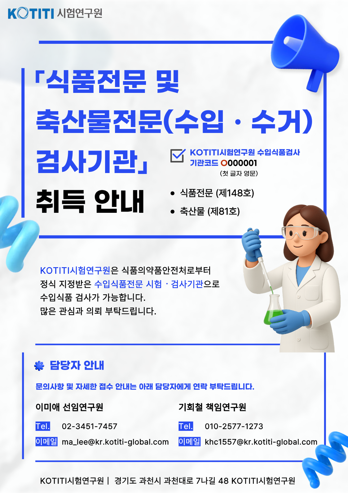 KOTITI시험연구원, 수입식품 전문검사기관 신규 지정 취득 안내