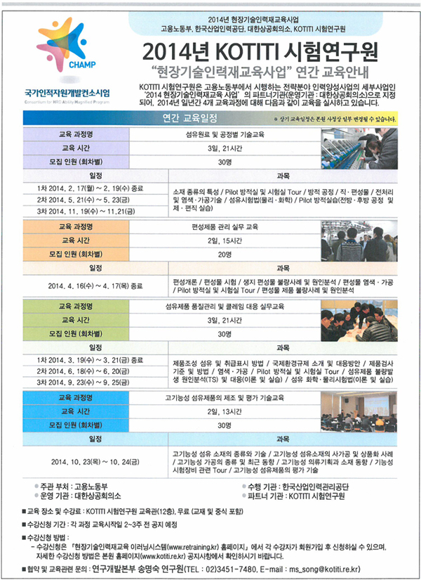 2014 KOTITI "현장기술인력 재교육 사업" 연간 교육일정 안내