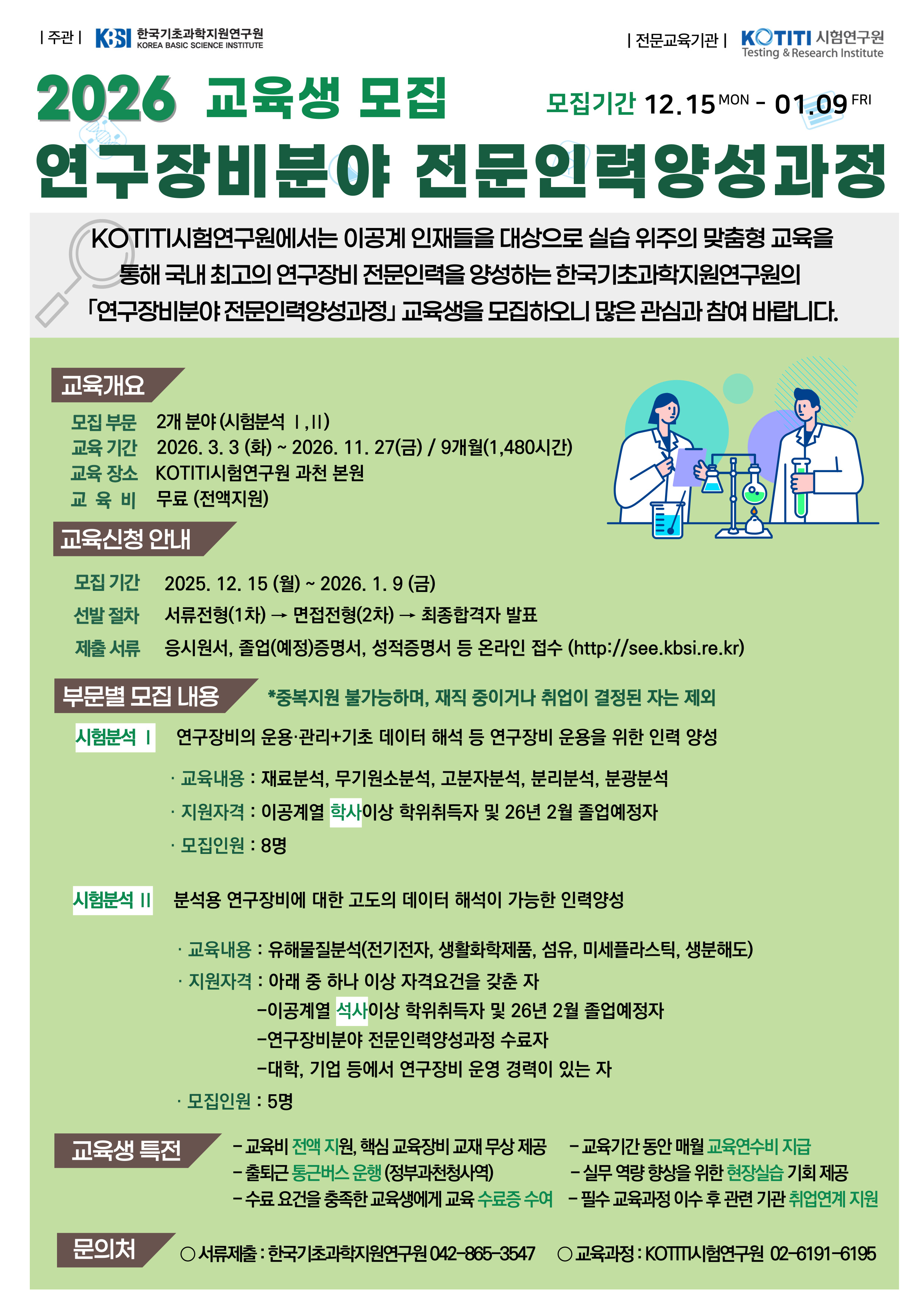 2026년 연구장비분야 전문인력양성과정 교육생 모집 안내