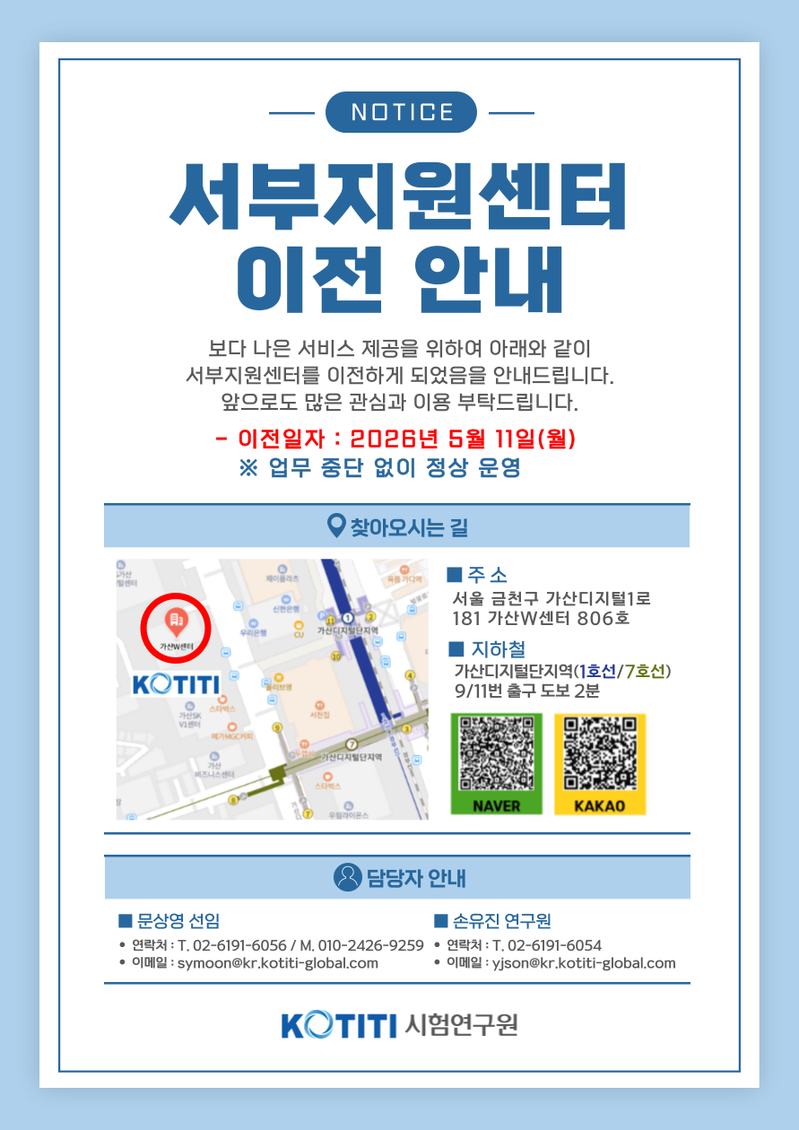 KOTITI시험연구원 서부지원센터 이전 안내